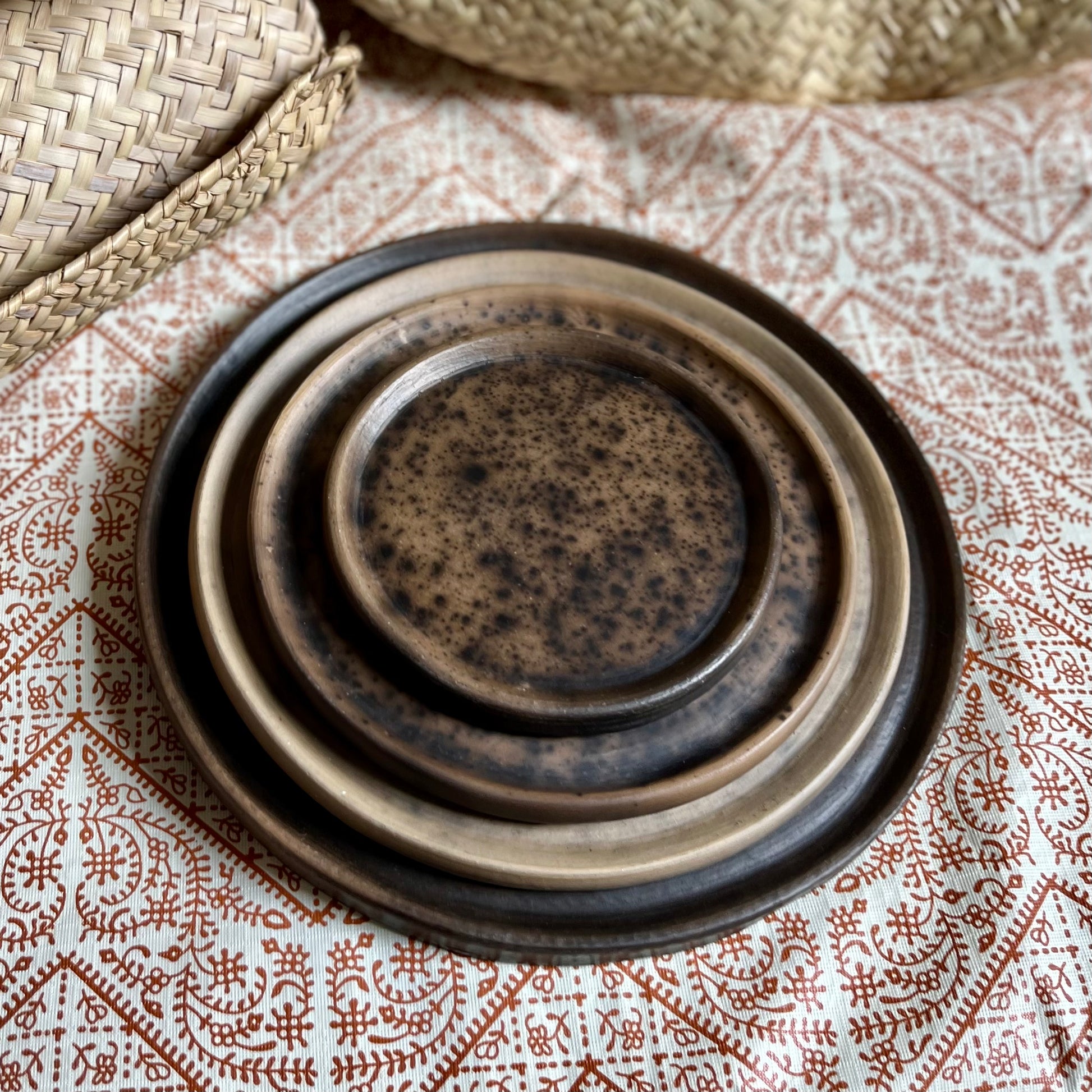 Beautiful ceramic earthenware made by Taller Coatlicue from Santa María Atzompa in Oaxaca have arrived. These food safe plates have unique earth tones and stunning burn effect. The distinguished looks of this family’s works displays a matte and unglazed finish all around.